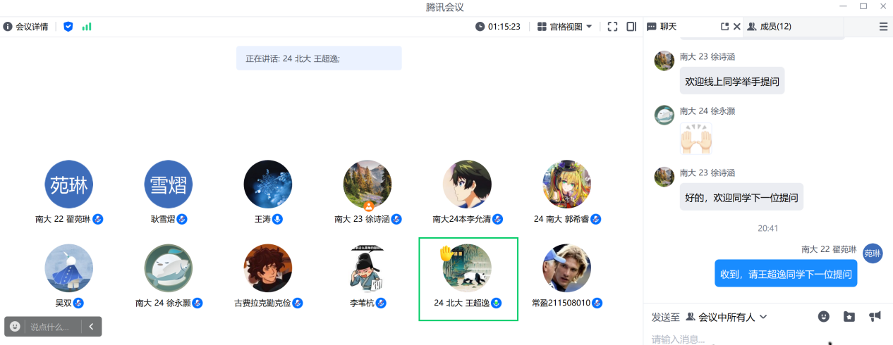 导读结束后,同学们积极发言,针对书目提出了自己的看法与问题。线上和线下的同学就“影响交通方式选择的因素”“铁路对非洲殖民主义的影响”“铁路时代对人工智能时代的借鉴意义”“研究者在数字史学中的地位”等诸多问题与王涛教授进行了交流。