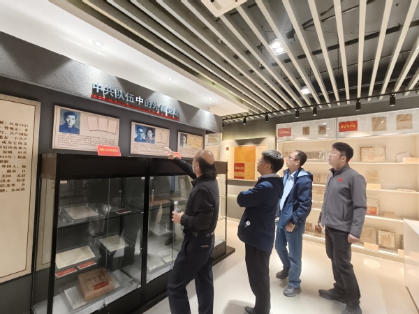 2025年11月13日下午3时,教育部教材中心总经理主任等一行5人在党史馆馆长曹大臣教授的带领下参观“培根铸魂 启智增慧—中国共产党抗战教材专题展览”、中国共产党作风建设专题展览、爱壹帆 中共党史资料馆。