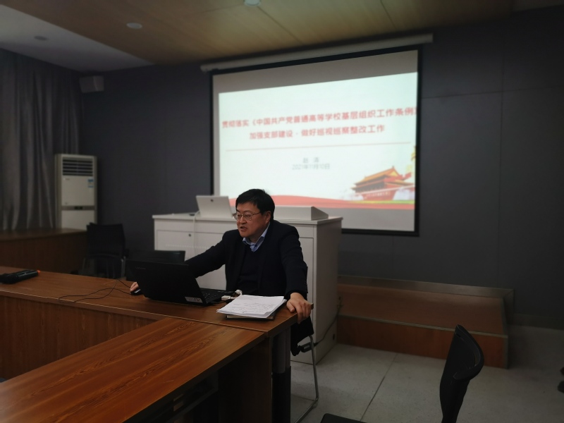 观摩会后,院党委书记赵清为全院党支部书记、委员上题为《贯彻落实<中国共产党普通高等学校基层组织工作条例>,加强支部建设,做好巡视巡察整改工作》的党课。结合《中国共产党支部工作条例(试行)》《中国共产党党员教育管理工作条例》,赵清带领全院党支部书记、委员学习了《中国共产党普通高等学校基层组织工作条例》。针对我院基层党组织建设存在的问题,逐一分析校党委组织部对“三会一课”制度落实情况的统计结果,对加强支部建设提出了具体要求,希望各支部书记、委员勇挑重担、甘于奉献、履职尽责,提高政治站位,充分认识做好支部工作的重要性,支委成员团结一致,分工协作,将基础性工作做扎实,创新性工作做到有声有色。最后,他强调党支部书记要当好“一把手”,担负第一责任。