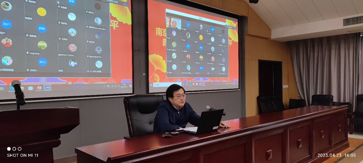随后他详细解读了开展主题教育的总要求、根本任务、工作安排、五个目标和需要着力解决的六个方面突出问题,重点介绍了学院党委全面落实主题教育的实施方案和工作安排。他指出要充分利用各方面资源,扎实组织开展读书班、理论中心组集体学习、讲党课等,做到全面深入、全员覆盖,推动全院师生系统化、常态化学习习近平新时代中国特色社会主义思想;要组织全院党员、干部扑下身子、沉到一线开展专题调研,把学习和调研落实到完成党的二十大决策部署中去,落实到实施“奋进行动”的各项工作任务中去,落实到加快建设“第一个南大”的实践中去,从破难题、促发展,办实事、解民忧两个方面着力推进学院各项事业高质量发展。最后,他强调,全院领导干部及党组织要切实扛起责任,将学习贯彻习近平新时代中国特色社会主义思想主题教育工作与落实我校"奋进行动"、推动学院中心工作相结合,认真推进、务实求效。