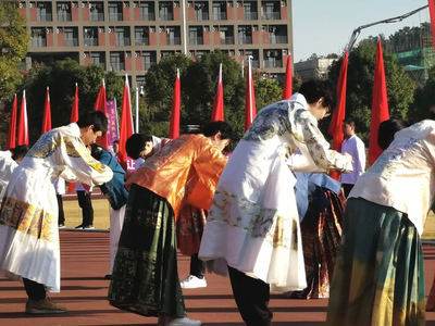 在文体部的精心准备和排演下,我院方阵的同学们身着明艳大气的明制服装步入会场。伴随着悠扬的音乐,史院学子以端庄的仪态向观众展示了中国的传统礼仪,彰显了史院的特色,展现了中国古典文化的美感,得到了现场观众的一致好评。