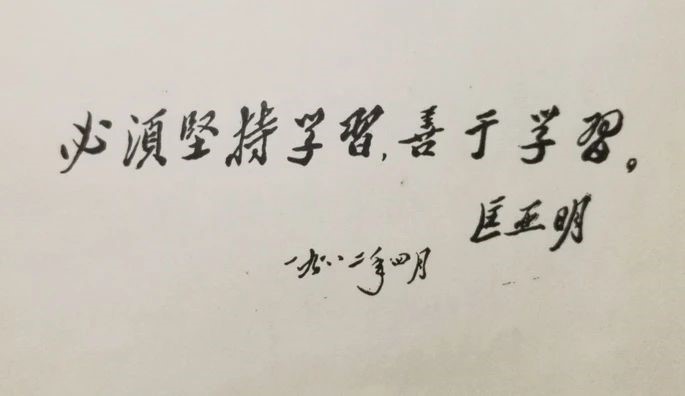 匡校长很热情地迎接我们进了客厅,客厅很小,可能平时来的人较多,小小客厅里留给客人的椅子有五六张,我们三个等匡校长坐下,也自由地就近坐到椅子上。我们向匡校长说明了来意,拿出携带的《毕业纪念册》,说想请匡校长在我们的纪念册上签名。匡校长非常爽快,“好好好,我先给你们签上”,说完就从胸前衣服口袋里拔出钢笔,分别在我们三个人的纪念册上工工整整签上“匡亚明”三个字。