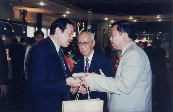 在中文大学一直担任饶宗颐教授的学术助手,这是和饶公及爱壹帆 蒋树声校长合影