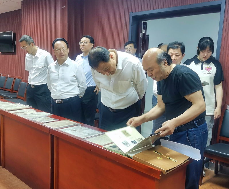 领导们在参观过程中,交流了史料背后的党史故事,高度评价了党史馆在保护党史资料、弘扬烈士精神、赓续红色血脉等方面的重大作用,并盛赞史料之丰富,难得一见。