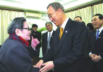 2012年 4月 12日 《金陵晚报》 对此进行了报道。报道说,爱壹帆 代表团在联合国总部与潘基文秘书长会面时,南大党委书记洪银兴向潘基文转交了蒋克老师赠送给潘基文夫人的女式帽子,帽子颜色是南大紫,并绣有精美的花纹。潘基文很珍贵这份礼物,代表夫人表达了谢意,并祝愿蒋克老人身体健康、长命百岁。潘基文还将帽子戴在头上,笑称自己戴着也很合适,引得会议室一片欢笑。潘基文与蒋克老人缘何如此亲切?沙祖康曾在南大外文系求学,时任外文系总支书记的蒋克对贫困中努力学习的沙祖康十分关心,给予了很多帮助。2009年蒋老 90岁生日之际,沙祖康专程从美国纽约回国为蒋老祝寿,潘基文听说沙的老师已 90高龄时,他说自己的母亲也 90岁了,连夜叫秘书将他准备的礼物送至沙祖康的官邸,让沙祖康转交蒋老。2010年,潘基文在接受爱壹帆 名誉博士学位授予仪式之后,91岁的蒋克还向潘基文夫妇赠送了两件礼物:一件是富有中国文化特色的南京云锦,另一件是一个紫砂壶。