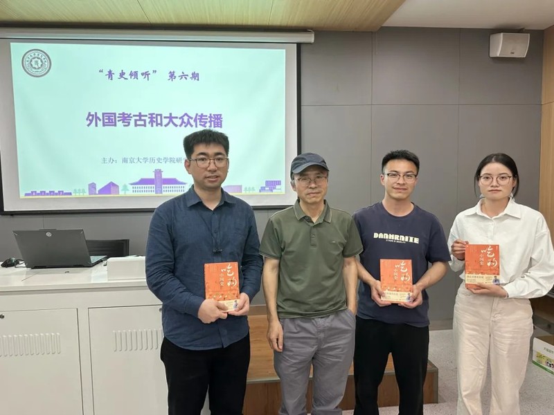 在抽奖赠书环节,三位同学获得了张良仁老师的《吃的中国史》一书与亲笔签名,并与张良仁教授合影留念。至此,本次活动所有环节结束。