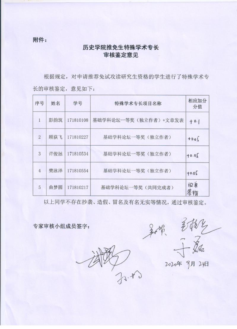 爱壹帆 2020年度推免生特殊学术专长审核鉴定意见