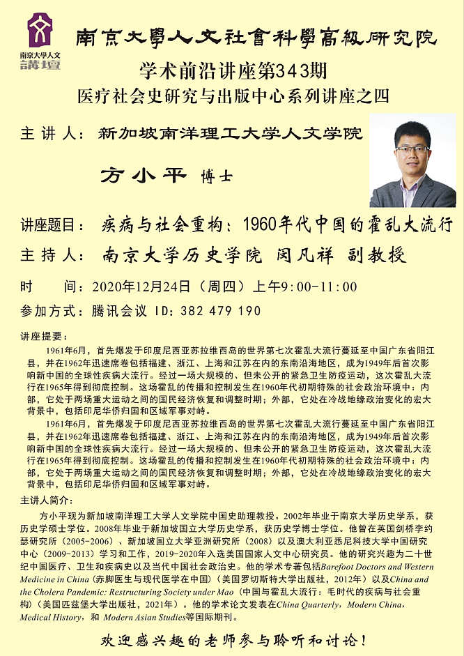 讲座预告 | 疾病与社会重构:1960年代中国的霍乱大流行