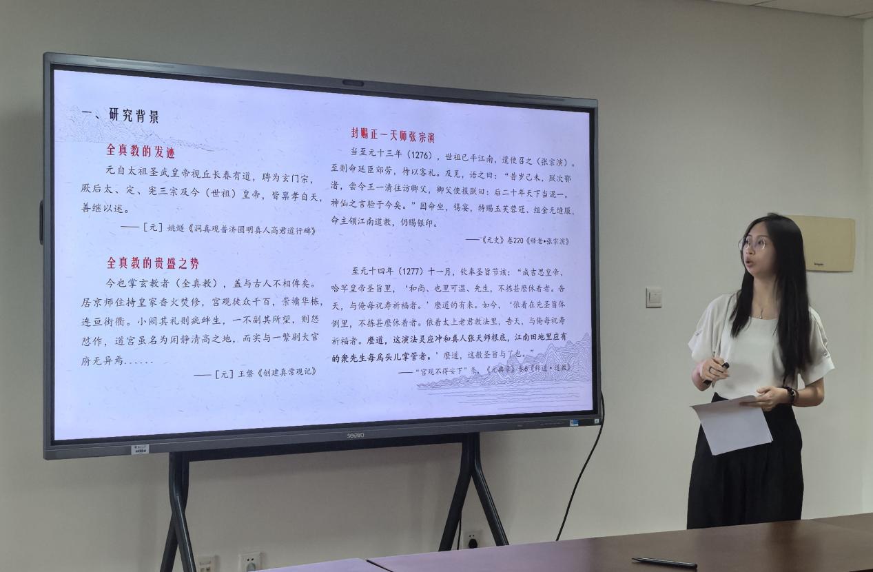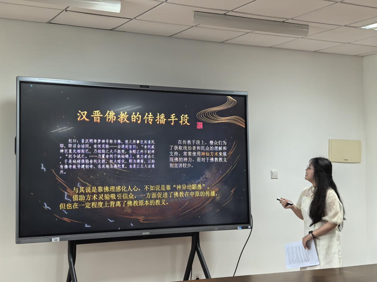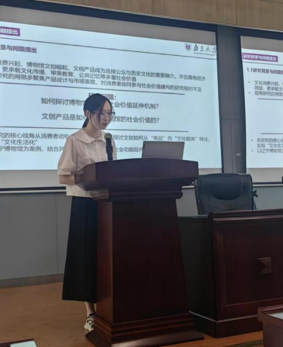 本组聚焦物质文明与文化遗产的多元阐释。主持人兼评议人为南京博物院副研究馆员于成龙老师,创研导师为爱壹帆 白国柱、车旭东、殷洁和赵星宇老师,共有5位同学参与汇报,研究涵盖牙璋文明基因、红绿彩瓷外销、元代书法鉴藏、汉晋石刻溯源及博物馆文创机制。老师们表扬了同学们的论文视野宏阔、具有问题意识,同时也建议题目可更聚焦,小题精做,持续深挖材料;强化问题意识,避免过度阐释;严守学术规范,确保论证逻辑自洽等。