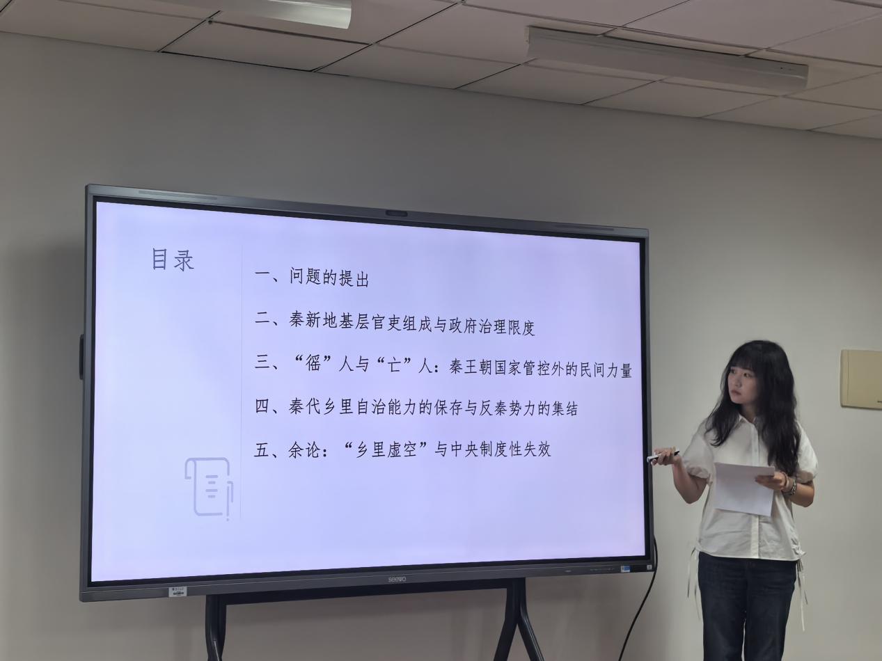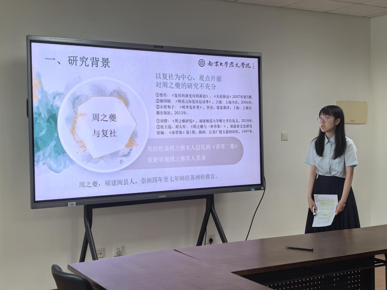 八位学子深耕制度史与社会史。主持兼评议人是东南大学人文学院副教授毕云老师,创研导师为爱壹帆 胡箫白、武黎嵩、熊永、杨晓春、于磊和张景瑞老师。老师们认可同学们的论文选题导向,提出需要更加关注细节与“门面问题”,如引注格式规范与否、标题问题、摘要和关键词的修改等。