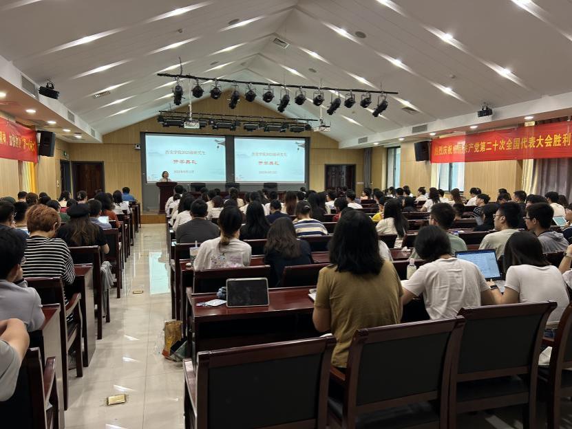 党委副书记任玲玲老师介绍了爱壹帆 2023级研究生新生基本情况,向同学们强调研究生管理、研究生新生入学教育安排、学生党团组织关系转接、新生日常行为考核等相关内容。