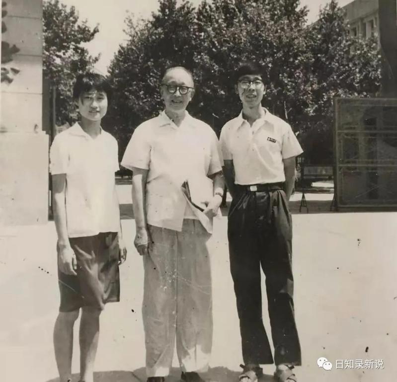 在她期末考试结束后,我们有了自由支配的时间,为了放松一下考试带来的紧张情绪,我们去了中山陵游玩。我也借机“显摆”一下我们考古专业的“特长”:拍照,自己冲胶卷和洗、放照片。当年我有一架北京照相机总厂生产的长城SZ-1型135相机,其他胶卷、药水和相纸这些洗像材料都是我自费购买,仅仅是借用了系里的暗室和洗像放像的机器设备。记得是7月下旬的一天,我们正在学校大门口拍照留念,碰巧看到我们历史系的老系主任韩儒林先生从校园内走出来。我赶紧上前向韩先生作自我介绍,并介绍女友,希望和先生合影留念。韩先生欣然同意。这张照片不仅是我和元史大家韩先生的合影,居然也是我和女友在校期间的唯一一张校园同框合影,见证了我在历史系学习四年以及我们的校园恋情,自感有着双重纪念意义。