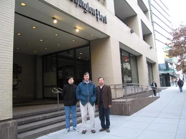 那天是圣诞夜,中午很多饭店都关门了,好不容易才找到一家快餐店,几个人匆匆吃了点汉堡包,聊了聊近况,饭后还到他们《华盛顿邮报》的大门前照了几张像留念。后来我又与他失去联系,听说他已离开《华盛顿邮报》,现在也算得上是美国的中国问题研究专家了。