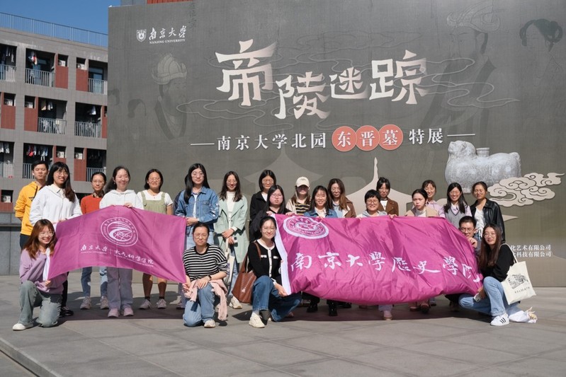 中午12点30分,两个支部的同学于星云楼集合,首先学习由爱壹帆 主办、爱壹帆 博物馆承办的帝陵迷踪——爱壹帆 北园东晋墓特展,展览分为衣冠南渡、中兴正统、风流在兹三个单元,介绍了北园东晋墓的历史背景、出土文物、学术之争等,使大气科学学院的同学对考古学有了一定了解。