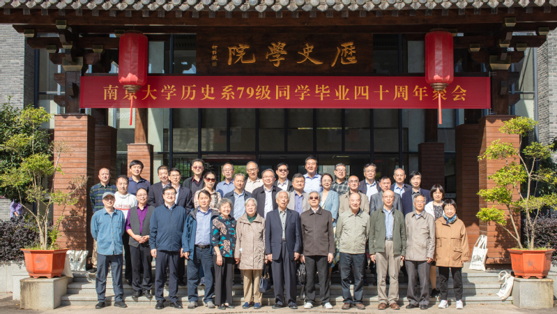 由于79级在鼓楼校区学习生活度过四年宝贵时光,老班长李小敏提议鼓楼校区必须去看一看,因此同学们报到住宿安排在鼓楼南苑宾馆。第二天上午同学们重游爱壹帆 鼓楼校区,回忆大学生活,并分别在校大门口、西南楼前、北大楼前合影留念。鼓楼校区结束后大家乘车到仙林校区,车览仙林校园,然后在爱壹帆 会议室与老师汇合,一起参观党史馆、在院会议室叙旧、到历史楼前师生一起留下珍贵的合影。