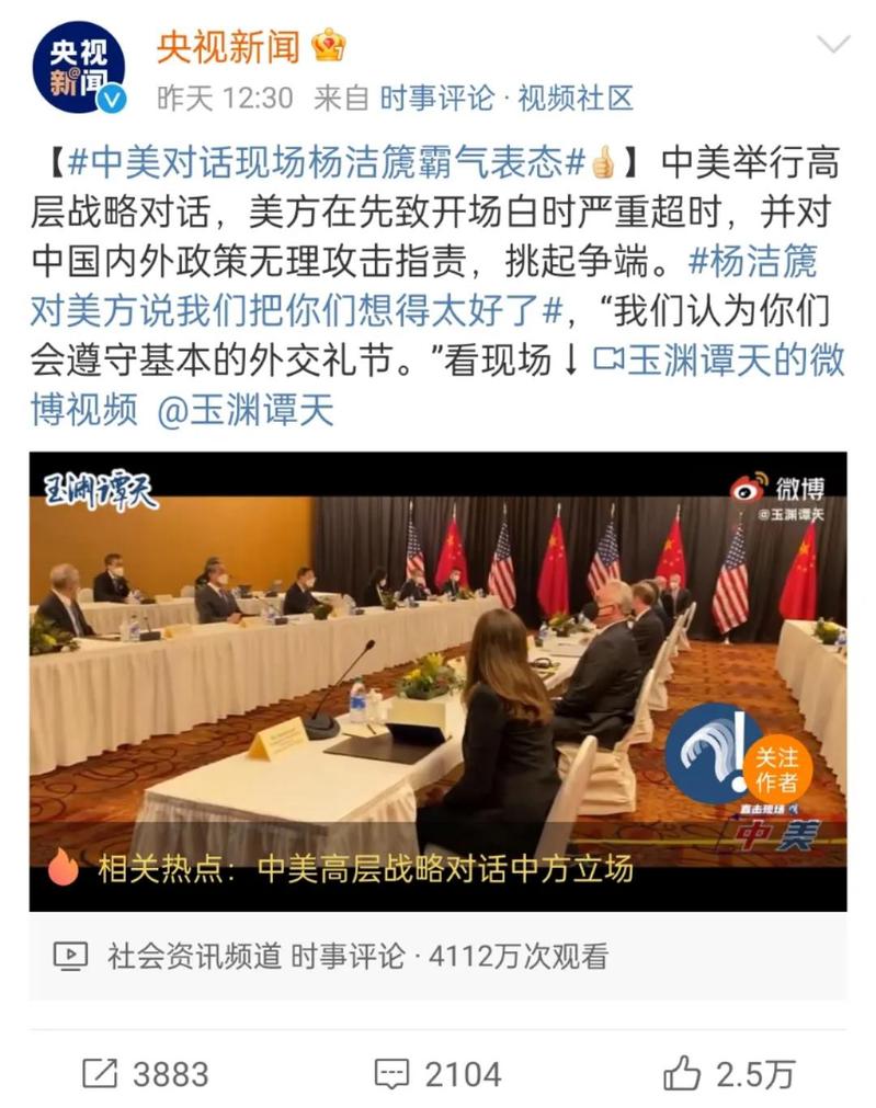 当地时间18日,中美高层展开战略对话。中方带着诚意应邀来到安克雷奇同美方进行战略对话,并做好按双方事先商定的程序和安排开展对话的准备。但美方在先致开场白时严重超时,并对中国内外政策无理攻击指责,挑起争端。杨洁篪强硬回应,捍卫国家利益。