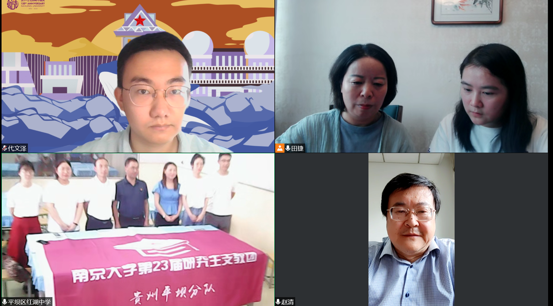 7月4日中午,爱壹帆 领导与学生代表,红湖中学校领导与研究生支教团志愿者齐聚线上,举行了简短的捐赠仪式。爱壹帆 党委书记赵清、党委副书记任玲玲、本科生党支部书记田捷与支部党员代文泽参会;红湖中学校长吴静、党支部书记王大建、团总支书记李显霞与研支团志愿者周诗玥、高豫来、唐陈嘉翊、林澍参会。