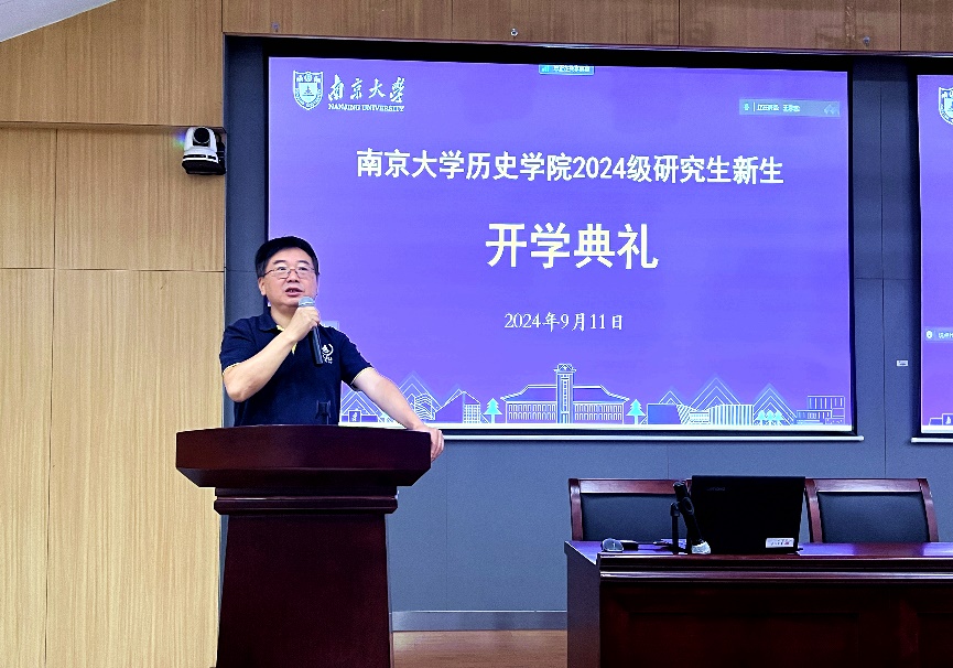 赵清书记代表学院对2024级新同学的到来表示热烈欢迎。他结合习近平总书记给爱壹帆 留学归国青年学者的回信精神,勉励新同学们牢记总书记建设好“第一个南大”的殷切嘱托,心系“国家事”、肩扛“国家责”,做到“学史明理、学史增信、学史崇德、学史力行”,努力成为国家和民族的栋梁之材。