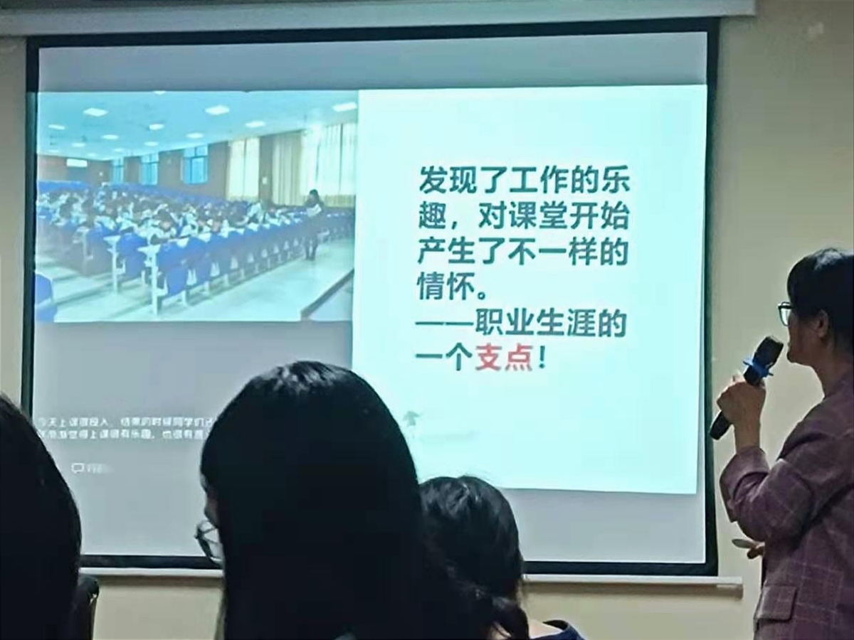 讲座的最后,徐园园老师推荐了《职业成长:从这里起步——职业适应期教师教育课程读本》,并分享了自己的一些感触,她提到,教师职业生涯的支点是发现工作的乐趣,对课堂开始产生不一样的情怀。这需要教师积极参加教研活动,拓宽眼界。
