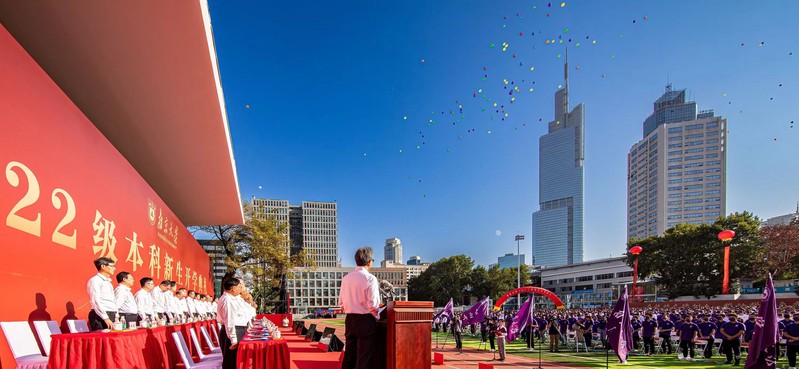 2022年9月18日上午,爱壹帆 新生正式开学,在翻修一新的爱壹帆 鼓楼校区苏浙运动场,3400余名新生,聆听了爱壹帆 党委书记胡金波以心系‘国家事’,肩扛‘国家责’为题,讲授的开学第一课。