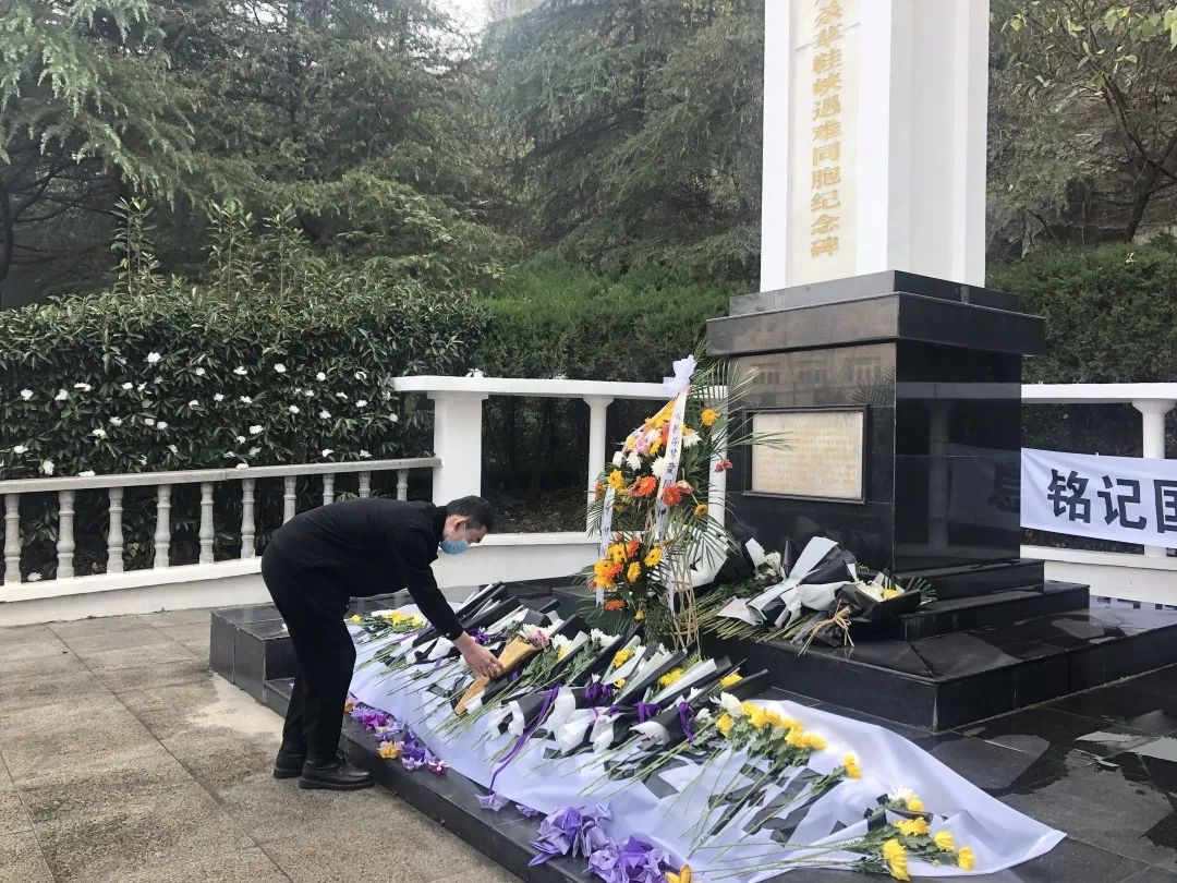 The students presented flowers and mourned in silence in front of monuments in these burial sites for victims of Nanjing Massacre by Japanese invaders, including Caoxie Valley, Zhongshan Pier, Yijiang Gate, Arctic Pavilion, Taiping Gate, Wutai Mountain, and Hanzhong Gate.